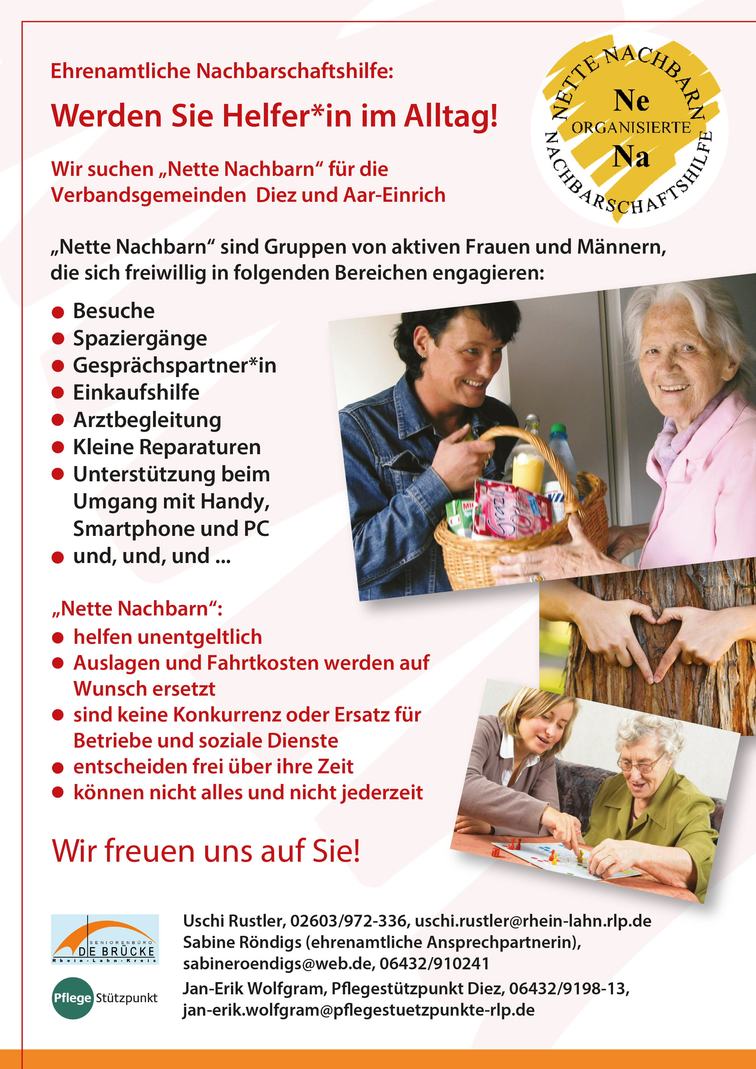 Wenn Sie keine Hilfe brauchen, aber noch aktivsein möchten und eine sinnvolle Aufgabe suchen, werden Sie selbst ein NETTER NACHBAR.
